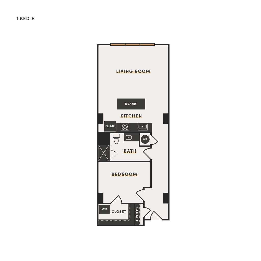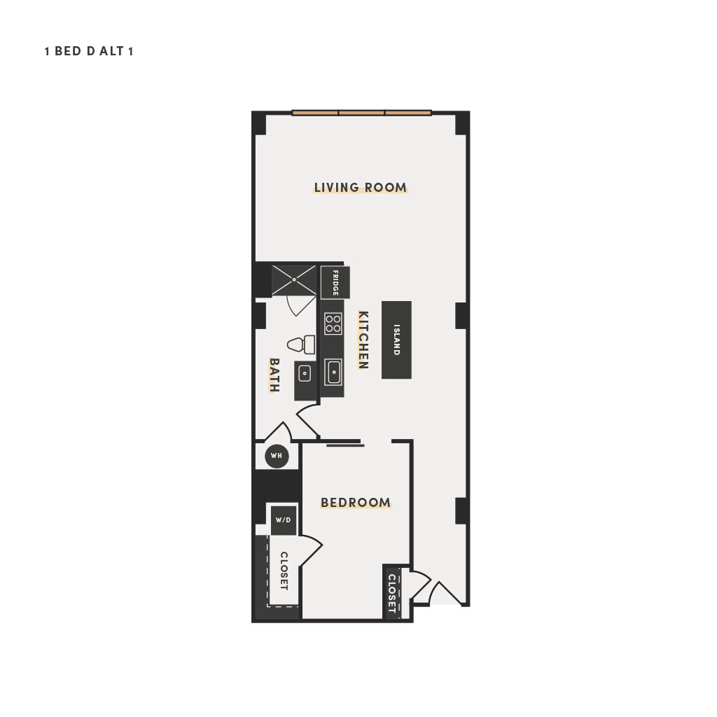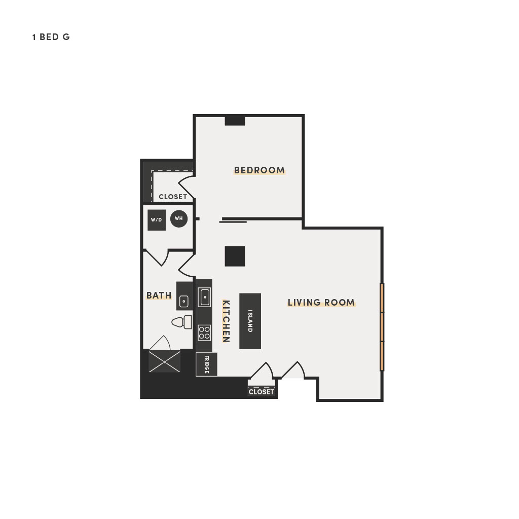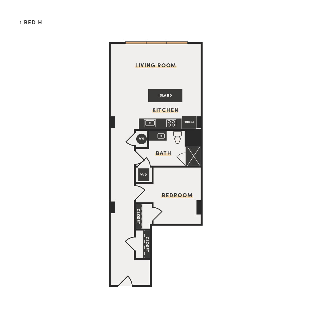 Rendering of the 1 Bed H floor plan with 1 bedroom[s] and 1 bathroom[s] at The Victor