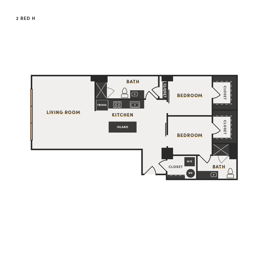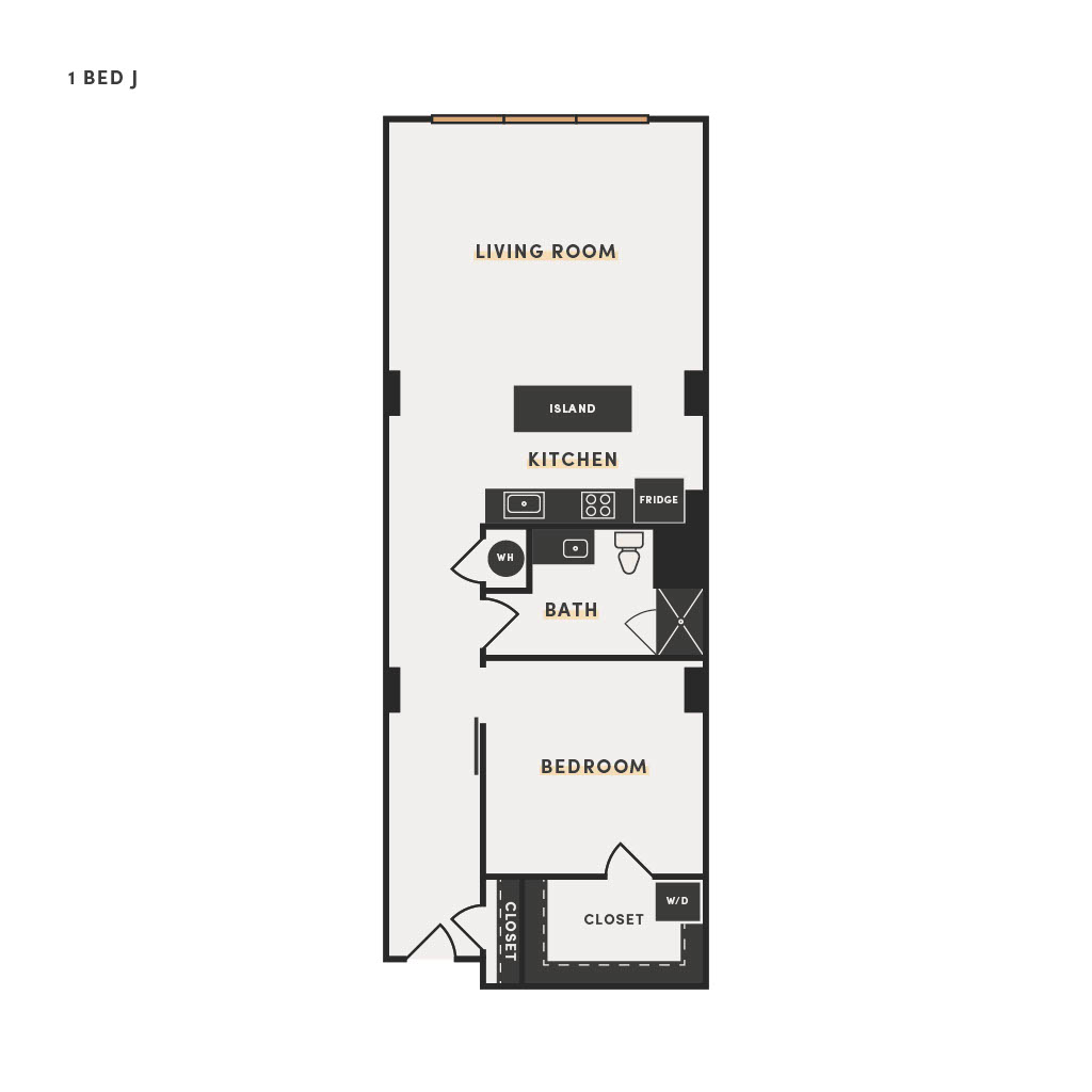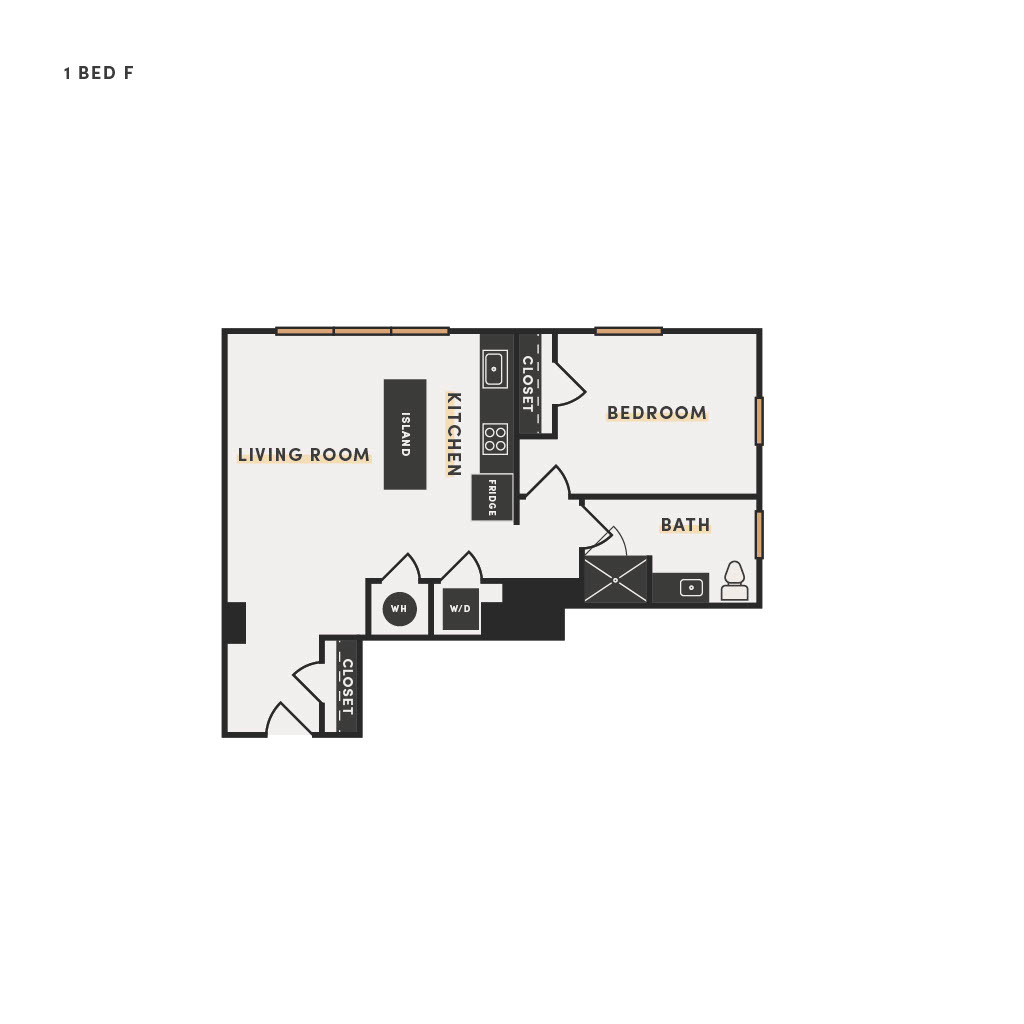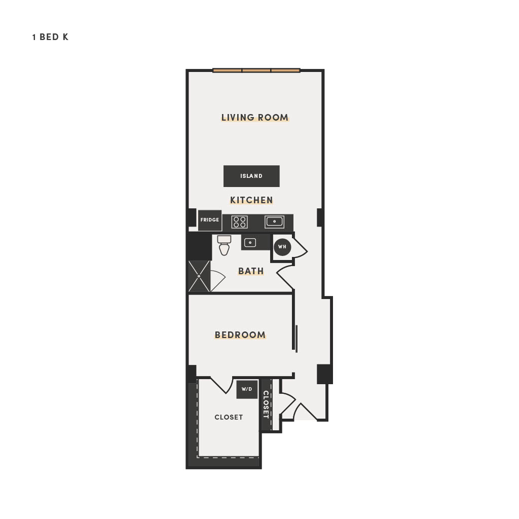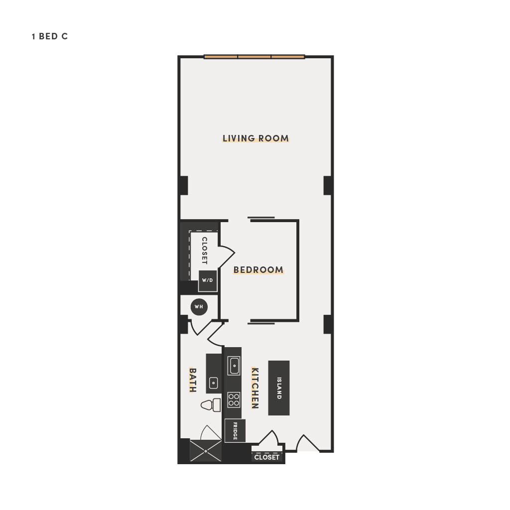 Rendering of the 1 Bed H floor plan with 1 bedroom[s] and 1 bathroom[s] at The Victor