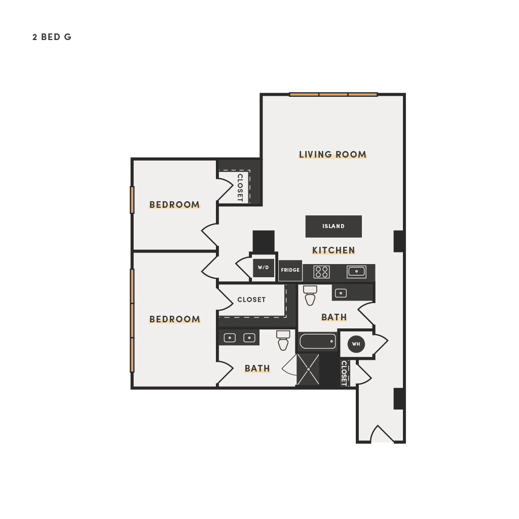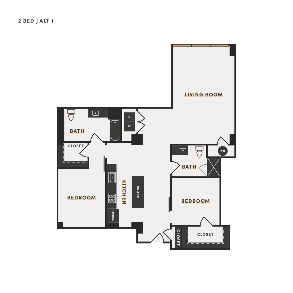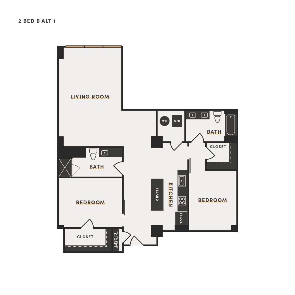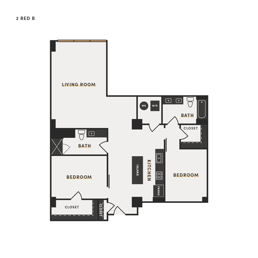 Rendering of the 2 Bed B floor plan with 2 bedroom[s] and 2 bathroom[s] at The Victor