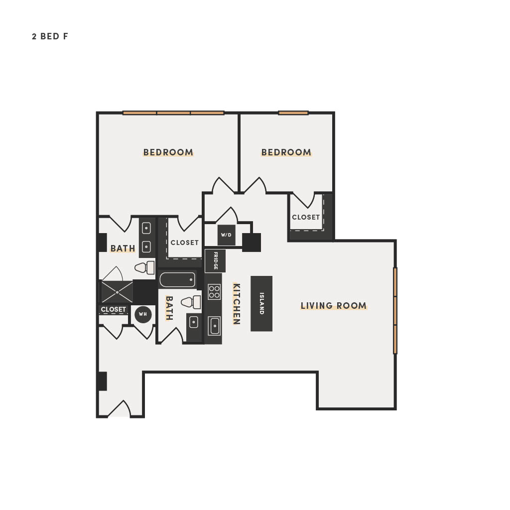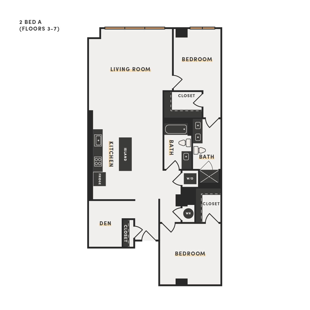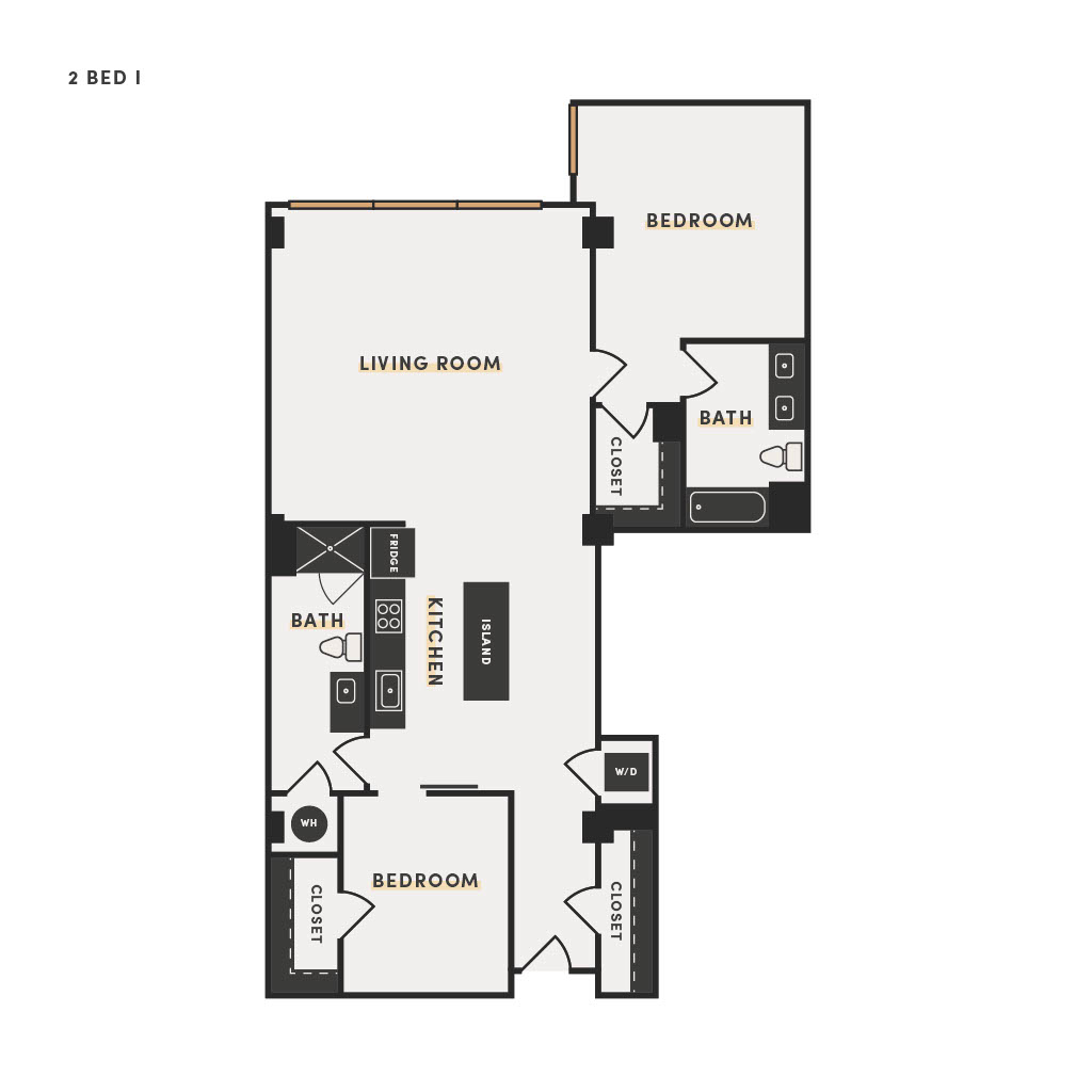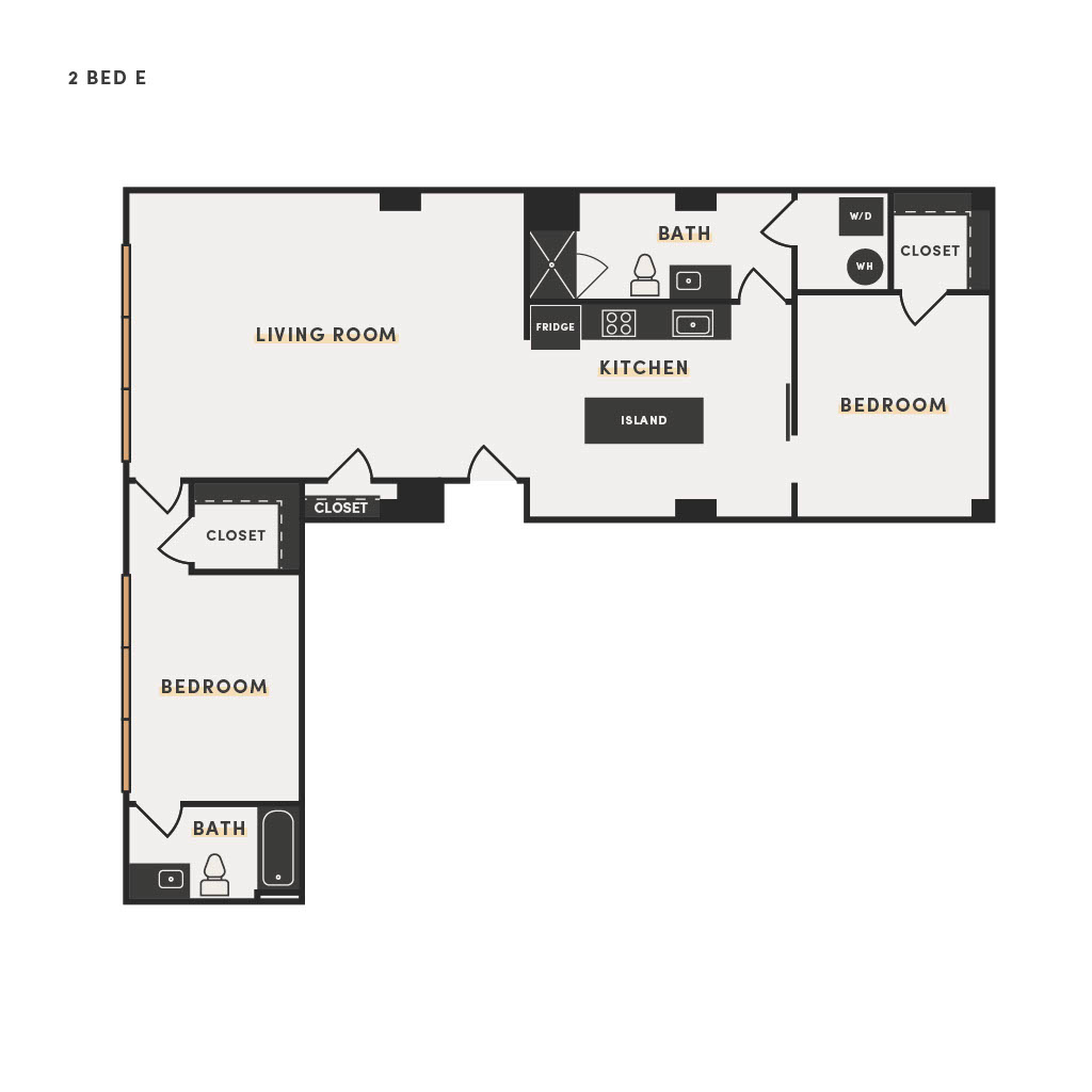 Rendering of the 2 Bed B floor plan with 2 bedroom[s] and 2 bathroom[s] at The Victor