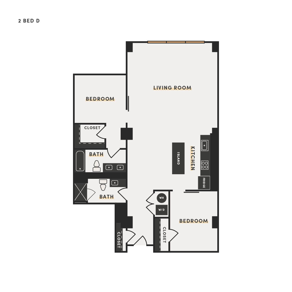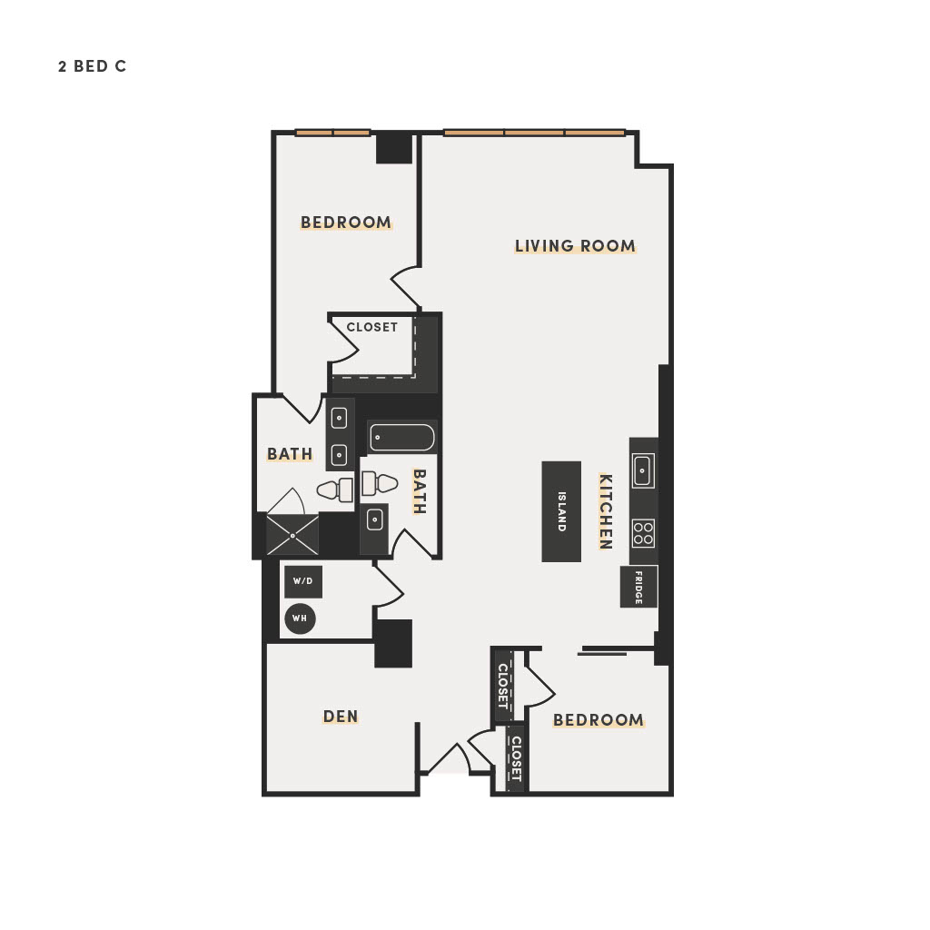 Rendering of the 2 Bed C floor plan with 2 bedroom[s] and 2 bathroom[s] at The Victor